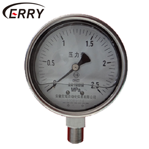 不锈钢压力表广泛应用于石油、化工、化纤、冶金、电站等工业部门对耐蚀、抗震要求较高的工艺流程中测量各种流体介质的压力。